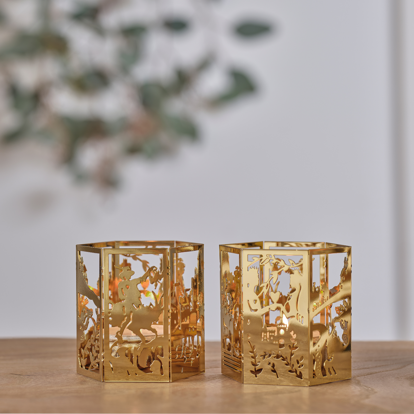 Når du tænder lysene i disse smukke stager, kaster de forgyldte udskæringer de mest fortryllende skygger og levende bevægelser ud i rummet. Perfekte til julens varme stunder, men også på årets andre dage, hvor du ønsker lidt ekstra hygge.