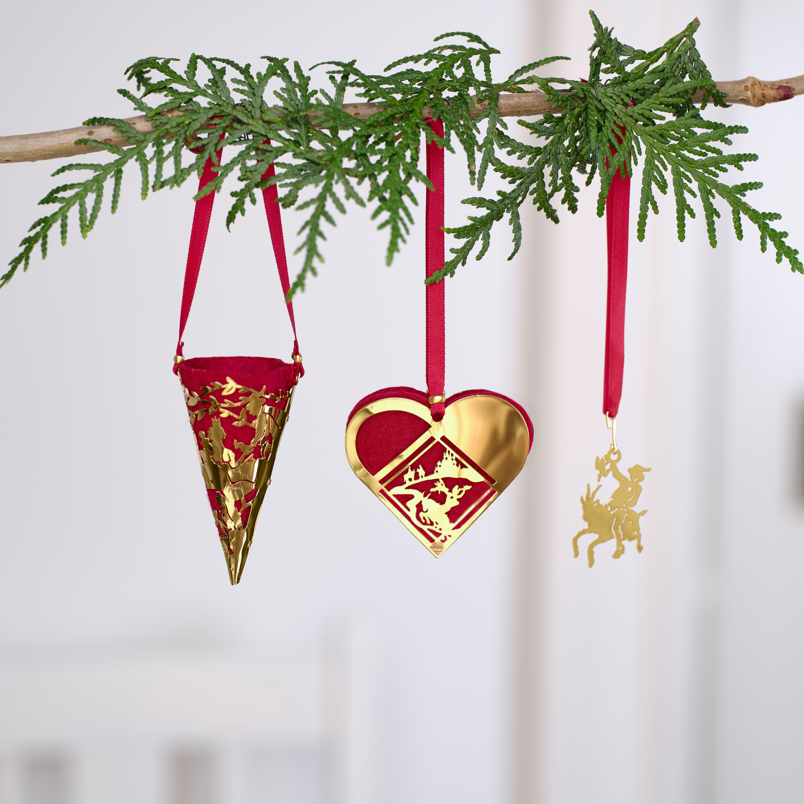 Disse tre miniature‑ophæng bringer eventyret Klods‑Hans ind i dit hjerterum – ganske enkelt uimodståelige. Hver af de små motiver – den trodende Klods‑Hans, det fine kræmmerhus og det flettede julehjerte – er udført i messing og belagt med 18 karat guld for et magisk skær. Med deres gyldne overflade og fine detaljer spreder ophængene varme og nostalgi – både til juletræet, forårspynt eller en hyggelig troldegren i stuen. Et lille eventyr, der kan nydes hele året. Sættet er en særlig kærlig gaveidé.