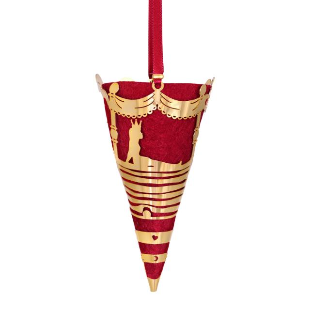 Kræmmerhuset kommer med en smuk, rød filt og et rødt bånd, så det er nemt at hænge op.