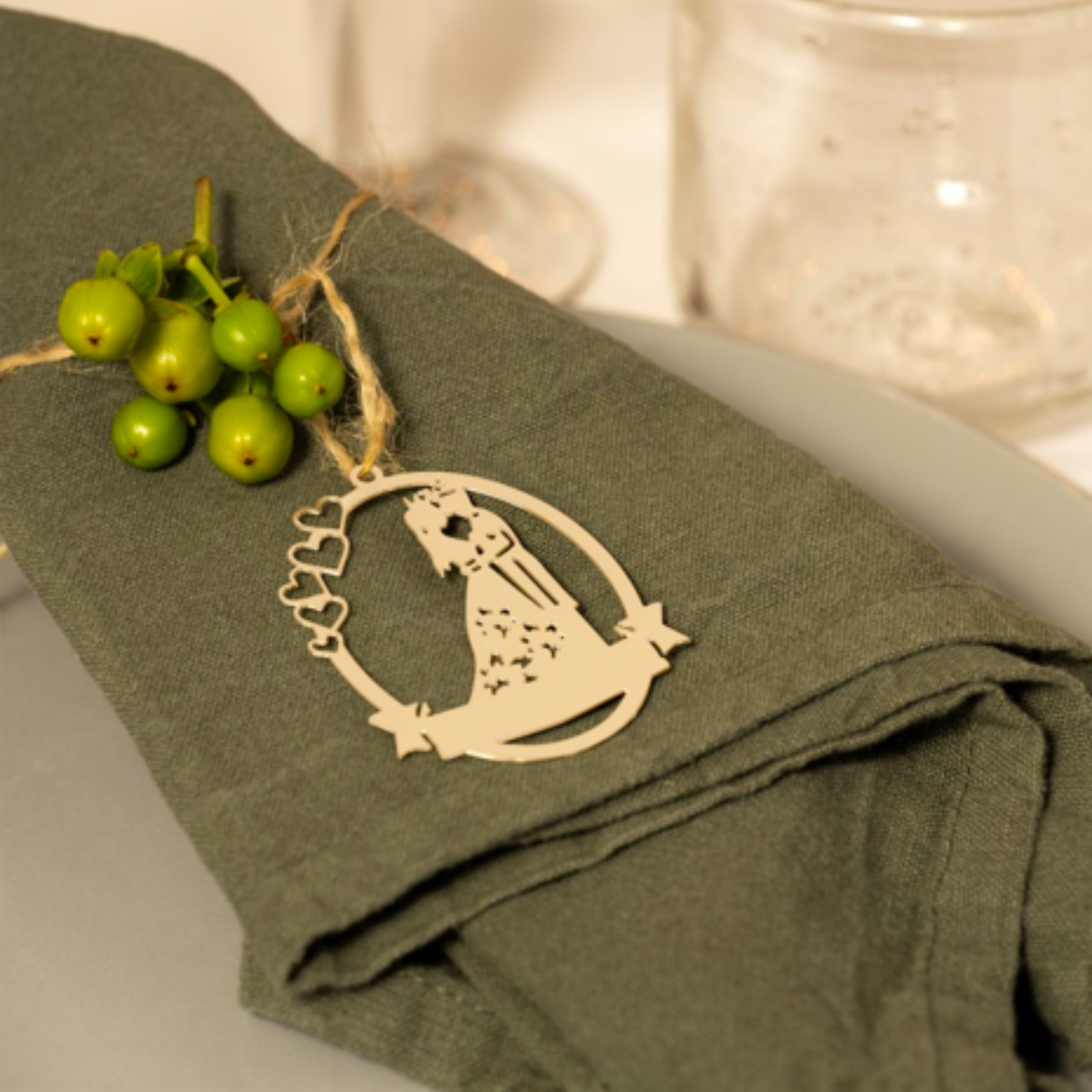 Brug ophængene på julebordet ved at isætte en snor og vikle den rundt om servietterne. Så får du et fint og eventyrligt opdækket bord til julefrokosten.