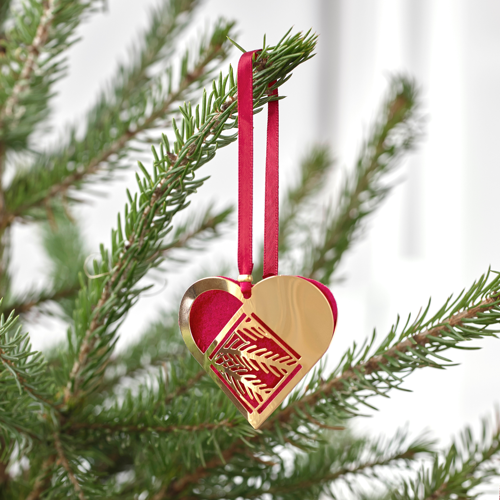 Dette fine miniature-julehjerte bærer motivet af en smuk grangren – et enkelt og tidløst symbol på julens hygge. Den lille størrelse gør det perfekt til de øverste grene på juletræet, som pynt i en julebuket eller til at hænge på en dekorativ gren i hjemmet. Minihjertet er fremstillet i messing og belagt med 18 karat guld, hvilket giver det en varm, gylden glød. Det måler 5 x 5 cm og leveres med et rødt bånd, så det er klar til at sprede julestemning fra første øjeblik.